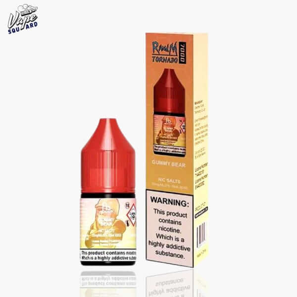 Step into a world of childhood nostalgia with Gummy Bear by Fumot RandM Tornado 7000 Nic Salts, now available in a convenient 10ml bottle. Go back to the carefree days with the vibrant blend of fruity flavors reminiscent of your favorite gummy candies.