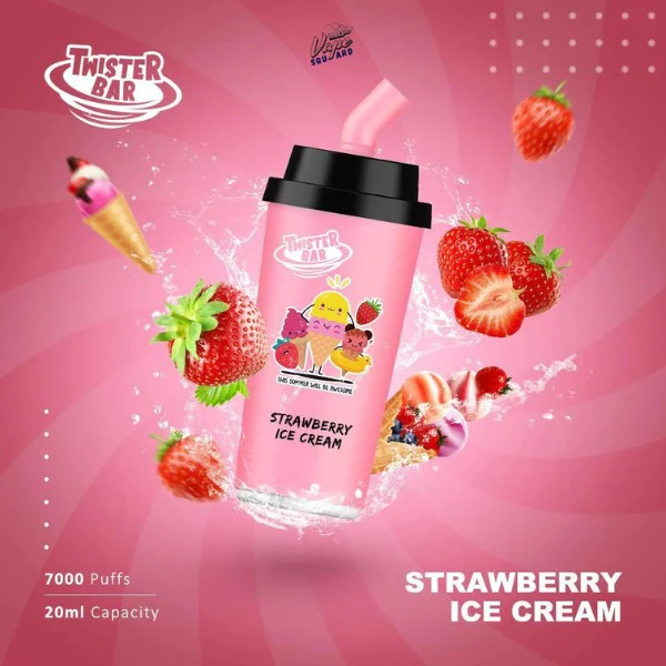 Crafted for convenience and enjoyment, the Twister Bar 7000 boasts an impressive capacity of 7000 puffs, ensuring long-lasting satisfaction without the need for frequent replacements. Its sleek and portable design makes it perfect for on-the-go vaping, allowing you to savor the irresistible taste of strawberry ice cream wherever your adventures take you.