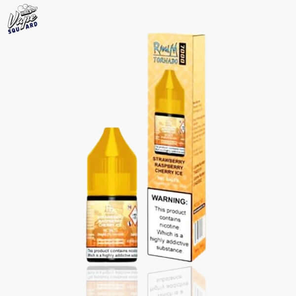 The Strawberry Raspberry Cherry Ice Fumot RandM Tornado 7000 Nic Salts 10ml offers a delightful blend of sweet strawberries, tangy raspberries, and juicy cherries, all infused with a cooling menthol breeze. Each inhale delivers the rich, ripe flavors of mixed berries, followed by a refreshing icy exhale that leaves a crisp and invigorating sensation on your palate.